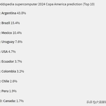 前十的余下球队分别是厄瓜多尔(3.7%)、智利(2.6%)、秘鲁(1.9%)和加拿大(1.7%)。#美洲杯#